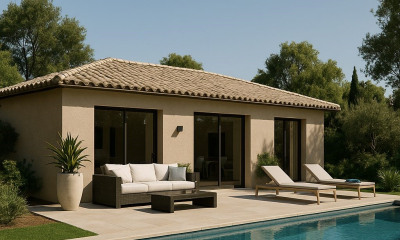 Schöne Sicht : dieses haus (Villa) 215 m², in 1985 gebaut, mit 2100 m² Grundstücksfläche besteht aus 5 Zimmern , darunter 4 Schlafzimmer. Es Ineinem Wohnzimmer, eine Keinee Küche und einem Swimmbecken. Anderes : Schornstein.