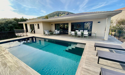 Schöne Sicht und Ost Ausrichtung : dieses möbliert haus (Villa) 370 m², in 1988 gebaut, mit 1939 m² Grundstücksfläche besteht aus 9 Zimmern , darunter 6 Schlafzimmer. Es ist mit Ineinem Wohnzimmer, mit einer Keineen Küche, mit einem Swimmbecken und mit einer Keller. Heizung : Individualheizung elektrisch Heizkörper.