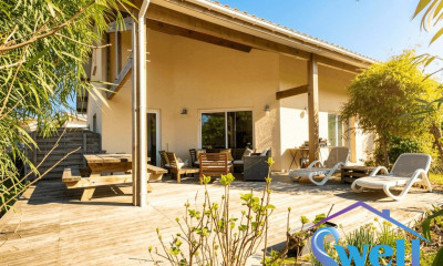 In der ruhigen und begehrten Wohngegend von Seignosse Bourg, nur wenige Minuten von Soorts-Hossegor entfernt, vereint diese sorgfältig renovierte traditionelle Villa Modernität, Helligkeit und Wärme. Auf einem über 1.014 m² großen, komplett eingezäunten Grundstück bietet sie ein ruhiges Wohnumfeld, umgeben von Pinien, und liegt dennoch in der Nähe von Geschäften, Schulen, Stränden und Hauptstraßen. Der Komplex besteht aus drei unabhängigen Wohneinheiten, ideal für eine große Familie, Urlauber oder um hohe Mieteinnahmen zu erzielen: Haupthaus – 115 m². Helles Wohnzimmer mit Holzofen und Zugang zu einer voll ausgestatteten Küche, Schlafzimmer im Erdgeschoss mit eigenem Duschbad, separatem WC, hochmodernem Duschbad mit Doppelwaschbecken, Speisekammer und prächtiger moderner Treppe, die ins Obergeschoss führt. Dort befinden sich ein Büro, ein Schlafzimmer mit Ankleide, ein Schlafzimmer mit Einbauschränken und ein drittes Schlafzimmer im Dachgeschoss mit Blick auf den Wald der Landes. Private Terrassen und ein 45 m² großer beheizter Salzwasserpool mit zwei separaten Eingängen runden diese Unterkunft ab, ideal, um die Natur zu genießen. Zwei T3-Wohnungen – jeweils 55 m²: Wohnzimmer mit Einbauküche, ein Schlafzimmer im Erdgeschoss mit begehbarem Kleiderschrank, Duschbad und separates WC. Im Obergeschoss befindet sich ein großes Schlafzimmer mit begehbarem Kleiderschrank. Jede Wohnung verfügt über eine private Terrasse, einen Garten und einen Abstellraum/Waschküche. Das gesamte Anwesen verfügt über drei Abstellräume, ein 15 m² großes Nebengebäude und einen Dreifach-Carport + zwei zusätzliche Parkplätze – für Komfort und Funktionalität. Der Garten ist landschaftlich gestaltet und mit Bäumen bepflanzt, perfekt gepflegt und bietet eine angenehme Umgebung ohne Gegenüber. Die Villa ist vollklimatisiert und verfügt über ein reversibles System, das modernen Komfort mit sorgfältiger Dekoration verbindet. Jede Wohnung wahrt die Privatsphäre ihrer Bewohner und bietet gleichzeitig einen harmonischen und hellen Wohnraum. Diese seltene Immobilie bietet die Möglichkeit, einen Teil des Erwerbs durch die Mieteinnahmen der Wohnungen zu finanzieren. Eine ideale Gelegenheit für eine Familie, die ein Hauptwohnsitz genießen und gleichzeitig von einer sicheren Mietinvestition profitieren möchte, oder für einen ruhigen Familienurlaub. Telefonisch rund um die Uhr erreichbar für weitere Informationen oder zur Vereinbarung eines Besichtigungstermins. Die Gebühren gehen zu Lasten des Verkäufers. Les informations sur les risques auxquels ce bien est exposé sont disponibles sur le site Géorisques : www. georisques. gouv. fr. Für weitere Informationen (Ref Nummer 340932848343), wenden Si sich bitte an www.capifrance.fr oder besuchen Sie uns unter www.capifrance.fr. Wir freuen uns, Ihnen bei der Suche Ihres hauses helfen zu können und hoffen, dass Sie es mit uns finden werden.