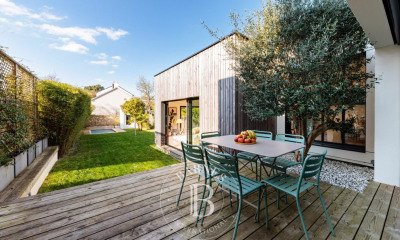 Eine Vorschau, ein exklusives Espaces Atypiques. Im Herzen der Weinberge von Nantes, drei Minuten vom Dorf La Chapelle-Heulin entfernt, erfindet dieses 205 m² große Haus den Geist eines Bauernhauses mit zeitgenössischer Ästhetik neu, und das alles auf einem 6.390 m² großen Waldgrundstück. Hinter seinen Steinmauern und unter seinem traditionellen Dach überrascht das Innere mit seinen offenen Räumen und seinem entschieden modernen Ambiente. Das Wohnzimmer setzt auf fließende Übergänge, unterstützt durch eine schöne Deckenhöhe und freiliegende Balken, die den Raum strukturieren. Das dank der großen Öffnungen lichtdurchflutete Wohnzimmer und Esszimmer öffnen sich nach außen und interagieren mit einer Einbauküche mit grafischen Linien. Auf der Nachtseite befinden sich im Erdgeschoss zwei Schlafzimmer, ein Büro und ein großes Badezimmer, während im Obergeschoss zwei weitere Schlafzimmer und ein Duschbad untergebracht sind. Draußen bieten die angrenzenden Terrassen unterschiedliche Atmosphären, zwischen intimen Ecken und geselligen Räumen. Der beheizte Swimmingpool verlängert die Sonnentage und verfügt über eine mobile Abdeckung auf Schienen, sodass Sie ihn fast das ganze Jahr über genießen können. Durch die Nebengebäude (Scheune, Box, Garage und angrenzender Keller) ergibt sich ein zusätzliches Potenzial von 120 m², das nach Belieben gestaltet werden kann. Die Auswahl der Materialien, die schönen Volumen sowie die grüne Lage inmitten der Weinberge, geschützt vor allen Blicken, verleihen diesem Haus einen unbestreitbaren Charme. Um diese Immobilie zu entdecken, kontaktieren Sie mich: Marjorie Fioleau (EI) unter 06 22 59 76 32 marjorie.fioleau@espaces-atypiques.com Handelsvertreter RSAC 901 088 591 NANTES ENERGIEKLASSE: C / KLIMAKLASSE: A Geschätzter durchschnittlicher Betrag der jährlichen Energieausgaben für den Standardgebrauch, ermittelt aus den Energiepreisen für das Jahr 2021: zwischen 2520 Euro und 3460 Euro. Informationen zu den Risiken, denen diese Immobilie ausgesetzt ist, finden Sie auf der Website von Géorisques: www.georisques.gouv.fr