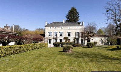 Im Herzen der südlichen Charente, in unmittelbarer Nähe der Stadt Chalais, wurde dieses bemerkenswerte Anwesen aus dem XVI Jahrhundert sorgfältig unter Wahrung seiner ursprünglichen Architektur renoviert. Eingebettet in ein 5,45 Hektar großes Südgrundstück bietet es einen spektakulären Blick auf die hügelige Landschaft und das nur einen Kilometer entfernte Schloss von Talleyrand. Die Lage, 45 Minuten vom TGV-Bahnhof Angoulême und etwa eine Stunde von den Flughäfen Bordeaux und Bergerac entfernt, verbindet Erreichbarkeit und Ruhe perfekt miteinander. Schon beim Betreten des Hauses wird man von der Eleganz der Räume, den hohen Decken, den historischen Kaminen, den sichtbaren Holzbalken, den Sprossenfenstern mit alten Glasfenstern und den Tomettenböden, die von der reichen Vergangenheit dieses Hauses zeugen, begeistert sein. Die Wohnfläche von ca. 350 m² setzt sich zusammen aus: einem einladenden Eingangsbereich, einem eleganten Wohnzimmer, einer großen Essküche mit monumentalem Kamin, vier Schlafzimmern, darunter eine Mastersuite mit Ankleidezimmer und Badezimmer, einem zweiten Badezimmer, einer praktischen Waschküche, einem Weinkeller, einem Wohnzimmer/Bibliothek im Obergeschoss, die einen raffinierten Rahmen bietet. Ein ausbaubarer Dachboden von 40 m² und 400 m² Nebengebäude, darunter ein wunderschöner Taubenschlag, bieten noch zahlreiche Gestaltungsmöglichkeiten. Die technischen Leistungen sorgen für modernen Komfort: Fußbodenheizung, die von einem Öl-Brennwertkessel gespeist wird, Wasserenthärter, elektrische Tore. Die Außenbereiche sind ebenso verführerisch: geschlossener Innenhof, beheizter Pool, Jacuzzi, geschützte Terrasse und eine Sommerküche mit Brotbackofen, die sich perfekt für Sommerempfänge in absoluter Privatsphäre eignet. Die Stadt Chalais ist zu Fuß erreichbar und bietet alle wichtigen Dienstleistungen: Bahnhof mit Verbindungen nach Bordeaux und Angoulême, Einkaufsmöglichkeiten, Restaurants, Wochenmarkt und sein historisches Schloss.