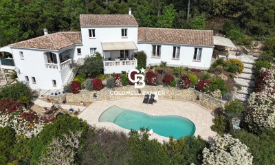 Eingebettet in eine grüne Oase im Herzen einer vertraulichen und vollkommen ruhigen Wohngegend entfaltet diese ebenerdige Immobilie den Charme einer raffinierten provenzalischen Lebensart. Nur wenige Minuten vom mittelalterlichen Dorf Lorgues entfernt verbindet sie absolute Privatsphäre, unberührte Natur und Nähe zu Annehmlichkeiten elegant. Das auf einem eingezäunten Grundstück von 4.000 m² errichtete Anwesen, veredelt durch einen mediterranen Garten mit einer wunderschönen Trockenmauer, profitiert von einer dominanten Lage mit offenem, beruhigendem Blick auf die umliegenden Hügel. Vom Eingang an setzt die Atmosphäre den Ton. Das Haus mit durchgehenden Öffnungen öffnet sich großzügig nach außen und offenbart einen lichtdurchfluteten Wohnraum, ein großes Wohnzimmer mit Kamin, das durch Schiebetüren auf die Terrasse und das Salzbad übergeht, die halb-offene Küche im provenzalischen Stil, die auf einen wunderschönen Innenhof mit Postkartenblick führt - ein provenzalisches Lebensgefühl zu jeder Jahreszeit. Dieses Sommer-Lounge schafft eine harmonische Übergangszone zwischen den beiden Schlafbereichen. Es ist ein echter Lebensraum, das Herzstück, das eine warme und gesellige Atmosphäre bietet, mit offener Küche und Wohnzimmer mit Blick auf eine verzauberte Landschaft, ideal, um jeden Moment mit Familie oder Freunden zu genießen. Ein elegantes Hauptschlafzimmer mit Büro, Bad und Ankleidezimmer bildet einen privaten und komfortablen Schlafbereich. Ein unabhängiger Bereich, der für unbesorgtes Gastgewerbe oder die Privatsphäre erwachsener Kinder gedacht ist, besteht aus vier Schlafzimmern, jeweils mit Bad und direktem Zugang zum Garten. Zwei verfügen über ein WC, und ein drittes befindet sich im Flur für die anderen beiden Suiten. Die Ausstattung, eindeutig hochwertig, erfüllt moderne Komfortansprüche: salt Wasser Pool vollautomatisiert, mit freien Linien, Fußbodenheizung, Klimaanlage, thermo-dynamischer Wassererhitzer, Glasfaser-Internet, Zentralstaubsauger, automatische Bewässerung, Doppelgarage und Werkstatt, begehbarer Dachboden mit einfachem Zugang. Eine seltene Adresse, die Ruhe und Zugänglichkeit kombiniert, in der Nähe von ikonischen Stätten wie den Gorges du Verdon, Saint-Tropez oder Cotignac. Ideal als Haupt-, Zweitwohnung oder für ein Gästezimmerprojekt, profitiert dieses Anwesen auch von schnellem Zugang zu den wichtigsten Verkehrsachsen: TGV-Bahnhof in 15 Minuten, Autobahn in 20 Minuten und Flughafen etwa eine Stunde entfernt. Ein außergewöhnlicher Lebensraum, in dem Eleganz, Natur und Gelassenheit voll zum Ausdruck kommen.