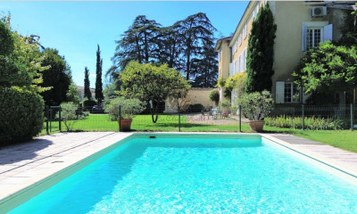 Located in the heart of Saint-Genis-Laval, just a ten-minute walk from the Lyon Sud metro station, this 18th-century mansion offers a unique living environment combining old-world charm and modern comfort. Built on three levels and boasting vast, light-filled spaces, it sits on a flat, tree-lined plot of 2,506 m², fully enclosed. Upon entering, a majestic 25 m² hall with vestibule and solid wood staircase sets the tone. On the right wing, a 30 m² suite with French ceiling, herringbone parquet flooring, two closets, fireplace, and 18th-century wine cooler evokes all the elegance of this residence. A bathroom with shower, sink, and toilet completes this space. On the left wing, a suite comprises a living room with fireplace and wall paneling, a dining room, and a kitchen. These last two rooms open onto a service corridor with storage, access to the wine cellar, and a separate exit to the street. The entire ground floor represents 161 m² (Carrez law) and offers magnificent volumes with a ceiling height of three meters. The wooden staircase leads to the first floor where you will find a 33 m² suite with fireplace, shower room and toilet as well as a 12.5 m² office (which can be used as a bedroom and is accessible from the suite or from the landing). This level also offers a 25 m² bedroom and a second 39 m² suite with shower room, dressing room, toilet and access to a 50 m² outdoor terrace. On the second floor are two spacious suites of 30 and 39 m², both equipped with dressing rooms and bathrooms, an 11 m² office adjoining one of the suites as well as two additional bedrooms of around ten square meters and storage attics. In total, the property has five suites, three bedrooms, two offices, and five bathrooms. The suites on the first and second levels are air-conditioned. The landscaped garden is fully enclosed by walls and houses a 9.5m x 4.8m swimming pool with electric cover, a well for integrated watering and a beautiful variety of century-old and fruit trees. A parking lot at the entrance to the property can accommodate five vehicles. The amenities include a gas condensing boiler, sixteen photovoltaic panels with a total output of six kWp, three of which are self-consumption, and a wine cellar. The house is rated D in the energy performance certificate. This residence will appeal to heritage lovers looking for a characterful property in the city center, close to shops, schools and transport, and offering an ideal living environment for a large family, a bed and breakfast project or for buyers who like to entertain. For a more dynamic view of this beautiful residence, do not hesitate to click on the following link: Mansion for sale - Saint Genis Laval - Les Clés d'Axelle Les informations sur les risques auxquels ce bien est exposé sont disponibles sur le site Géorisques : www.georisques.gouv.frCarte professionnelle: CPI69012025000000027 délivrée par Chambre decommerce et d'industrie à Lyon métropole Saint-Etienne Roanne