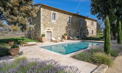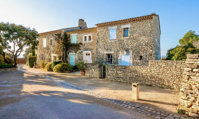 Commanding a dominant position on the edge of the lively Luberon village of Goult, this remarkable stone property boasts panoramic views across the valley, utterly unobstructed from east to west. The property is composed of a handsome stone farmhouse, independent suites for guests, and a state-of-the-art gym and spa complex. Offering a terrific sense of privacy and outstanding amenities, it stands as a luxurious retreat in the heart of the Luberon valley. Elegant Provençal architecture, natural materials and the highest grade of modern comforts combine here to create a spectacular property. An imposing hardwood door opens to reveal the foyer, where you are immediately greeted with a breathtaking view of the Luberon mountains. A stone staircase winds elegantly to the first floor. The entrance flows into a magnificent 72m² open-plan living space, lined with wrought-iron French doors that flood the interior with natural light and open seamlessly onto the main dining terrace. This expansive living area is anchored by a fireplace with sitting room on one side, and a sleek kitchen with quartz countertops on the other. The floors are beautifully clad in local Oppède stone. The ground floor further comprises: generous office with superb views - an excellent setting for remote working; guest WC; spacious utility room; two smaller bedrooms (ideal for staff or nanny) sharing a shower room; and access to the double garage. The first floor is composed of: principal suite with dressing room and adjoining shower room with WC; second double bedroom suite with private shower room, WC and rooftop terrace – enjoying an extraordinary panorama of the Luberon valley; two further beautifully proportioned double bedrooms and two bathrooms with WC. Rich oak floors bring warmth throughout, while cathedral ceilings and sweeping views add grandeur to the suites. The 'pièce de résistance' is an exceptional detached stone building offering an 80m² open-plan space, fronted by oversized arched French windows that frame uninterrupted views of the landscape. This incredible space features oak flooring, soaring ceilings, and exposed beams and tiles. Currently serving as a private gym and leisure complex, it includes a bespoke bar and TV area. Adjoining this space is a superb spa, complete with sunken Jacuzzi, picture windows overlooking the southern and western views, a marble-tiled hammam, shower room, utility area and WC. A spiral staircase leads to a mezzanine bedroom, and the ground floor also houses a garage with an electric door. The entire building is fully air-conditioned and centrally heated. Two further independent bedroom suites complete the property, each offering guests the privacy of their own shower room, together with easy access to the swimming pool. The main house opens entirely to the south, with wrought-iron French doors leading out to the vast stone dining terrace. Panoramas stretch endlessly in every direction. Part of the terrace is covered and equipped with a summer kitchen, creating an ideal space for outdoor entertaining. From here, the lawn extends towards the grandly proportioned 17m x 7m heated swimming pool, fitted with an electric cover. A large surrounding terrace provides the perfect setting for soaking up the Provençal sun. Amenities include: full air-conditioning; underfloor heating and cooling on the ground floor of the main house; double glazing with security glass; mains water; septic tank conforming to current regulations; fibre-optic internet; sophisticated alarm system; water softener. The property is entirely enclosed with electric fencing and accessed via two electric gates. There are two garages – a double garage for the main house and a separate garage for the gym annex. This is an exquisite stone property, just a short distance from one of the Luberon's most sought-after villages, with its bustling market, excellent restaurants, charming shops and bakery. Luxury, character, and contemporary comfort are brought together in an outstanding setting.