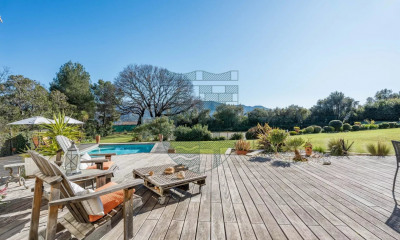 With an open view and east exposure this house 288 m² (about 3096 ft²), with a land size of 2800 m² (about 0,69 acres) comprises 9 rooms including 6 bedrooms, 3 bathrooms and 3 toilets. It is provided with a living room 128 m² (about 1376 ft²), with a Kitchen/dining room, with a swimming pool, with 2 garages and with a cellar6.5 m² (about 70 ft²). Heating : Individual gaz. Others : fireplace.