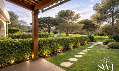 Saut Winter Immobilier presents this superb 259 m² architect-designed house , completely renovated, located in a calm and privileged environment in the Gulf of Saint-Tropez. Facing due south, this luxury property offers high-end services : underfloor heating, reversible ducted air conditioning, heated swimming pool, adjoining garage, carport for 3 vehicles, pool house and independent chalet.