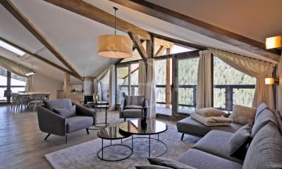 Welcome to Grey Garden, a prestigious apartment located in the highly sought-after Jardin Alpin area of Courchevel 1850. Nestled on the ground floor of a modern residence, this exceptional property promises a unique experience combining alpine charm and high-end amenities. Ideally situated just opposite the Jardin Alpin gondola, the apartment offers direct access to the ski slopes and is surrounded by the resort's most luxurious palaces and hotels. The main living area impresses with its cosy ambiance and refined decor. The lounge, perfect for family evenings or gatherings with friends, opens onto a welcoming dining space and a carefully equipped kitchen, designed for gourmet cooking enthusiasts. The five bedrooms, each with a private shower room and a flat-screen TV, ensure both comfort and privacy. The master suite features a King Size bed, an elegant bathroom with double sinks and separate toilets, and a spacious walk-in closet. Three additional double bedrooms, including one with a Queen Size bed, and a fifth room ideal for guests complete this outstanding property. For moments of relaxation, a 60 sqm terrace invites you to enjoy the mountain air, while the residence offers a shared spa area with a sauna and hammam. A second TV lounge adds to the thoughtful amenities designed for your utmost comfort.