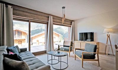 Located in the heart of the Morel district, in a new residence built in 2024, just 180 metres from the slopes, this flat for 8 people promises an unforgettable alpine experience. With its spacious living areas, refined finishes and panoramic views of the peaks, it's the ideal place for a family get-together. After a day on the slopes, enjoy convivial moments around the fireplace or relax on the terrace overlooking the mountains. This unique setting, both warm and elegant, is the perfect retreat for a rejuvenating and memorable holiday. Accommodation benefits : - Hammam's shower - Mountain views - Ski Shop integrated into the residence and personalised concierge service (ski passes, sled dogs, snowshoe outings, etc.) - Close to the Morel chairlift and slopes It is laid out as follows: - Fully equipped kitchen - Balcony with outdoor lounge - Spacious and bright living room with TV - Bedroom 1: Double bed with en-suite shower room featuring a Hammam system & single washbasin – balcony - Bedroom 2: Double bed with en-suite shower room and single washbasin – balcony - Bedroom 3 (cabin): 4 bunk beds (90x200) - 1 bathroom with bathtub, double washbasin, and 1 WC - Guest WC Services included: - Personalised welcome on arrival in the flat for a tailor-made service from the moment you arrive - Regular cleaning of the apartment - Provision of high-quality household linen (sheets, towels) - Dedicated concierge service to meet your needs: activity bookings, transfers, additional services, etc. - Welcome products