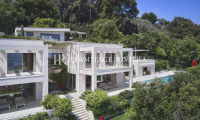 Luxury villa for rental in Cap Ferrat. Splendid and recently renovated property located on the west side of the peninsula famous Saint-Jean-Cap-Ferrat, this beautiful villa with panoramic sea views to Cap d'Antibes. <BR><BR>The villa offers a large living room of 80sqm with a dining room and library, kitchen opening onto the terrace with views of the beautiful mediterranean garden, master bedroom 40 m² with bathroom en suite and dressing room, another bedroom with a bathroom en suite. <BR><BR>The staircase leads to three bedrooms with en suite bathrooms, which have direct access to the heated pool, and another room with a separate entrance. Alarm, air conditioning. Garage.