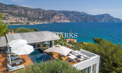 Available for seasonal rental, this contemporary villa is set on the eastern side of Saint-Jean-Cap-Ferrat and enjoys wide-open views towards Monaco and the Mediterranean. Fully renovated and arranged over three levels with lift access, the property offers approximately 600 sq m of living space and accommodates up to ten guests in a private and highly comfortable setting. The principal reception areas open onto elegant terraces and a 20 x 5 metre heated swimming pool with counter-current system, while the overall atmosphere is one of calm, privacy and understated luxury. The villa offers five en-suite bedrooms, including two principal suites with dressing rooms, generous bathrooms and private terraces with panoramic views. A professional kitchen, cinema room, bar-lounge, gym and massage area further enhance the experience, while the pool house with barbecue, sauna and shower is particularly well suited to relaxed outdoor living throughout the season. Two independent staff studios provide additional flexibility for household personnel. A stone jacuzzi overlooking Beaulieu and Cap Ferrat, a large garage for up to six vehicles, additional parking and a full security system with surveillance cameras complete the property. This is a substantial and very well-equipped rental for clients seeking contemporary comfort, privacy and far-reaching Riviera views in Saint-Jean-Cap-Ferrat.
