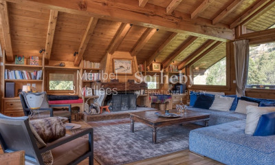 Nestled in the fir trees, on skis, out of sight in a car-free district, and yet in the heart of Meribel, the chalet overlooks the resort and enjoys an exceptional location with its south terrace and its breathtaking view of the tops. It is one of the most authentic chalets in Méribel. Comfortable and warm on 3 levels, with a splendid fireplace, it offers a large bright living room with elegant rustic open kitchen and 5 intimate bedrooms Housing Nestled in a wild environment in the heart of the ski area and 200m from the heart of the resort, the Chalet Sorbier overlooks Méribel and benefits from an exceptional location with its south terrace and its breathtaking view of the peaks. Surrounded by authentic chalets, it is a magical and unique place sheltered from prying eyes, to experience a fabulous timeless stay. Comfortable and warm on 3 levels (160m2), with a splendid fireplace, it offers a beautiful bright living room with elegant rustic open kitchen and intimate bedrooms. Departure / return on skis. Located in the heart of the 3 valleys (Courchevel, Méribel, Menuires - Val Thorens), in the most exceptional district of Méribel. At the end of a snow-covered pedestrian dead end, it is located directly in the middle of the slopes, and yet a few steps from the center of the resort (Olympic park: ice rink, swimming pool, climbing wall, etc.) and the start of the ski lifts (La Chaudanne, ESF ski lessons). All shops are within walking distance within a radius of 300 meters (general food, bakery, butcher, ski rental, restaurants). When you arrive, the discovery of this corner of paradise is magical, almost unreal in the middle of snow-covered trees and facing the peaks, without a car. Fitted out with top-of-the-range noble materials (old wood, household appliances, solid oak table, etc.) to make you feel 'at home', this is one of the resort's historic chalets allowing you to fully enjoy an extraordinary atmosphere, unlike the impersonal apartments that have been mass-produced for 20 years. On the floor, a real exceptional raw Loze stone, in front of a splendid fireplace for convivial and warm evenings. The chalet measures 160 m2, it is spread over 3 floors and can accommodate 10 people without feeling cramped. - On the upper floor, 2 large, very independent bedrooms (king size beds 180x190) separated from each other by the central access staircase. With their 'dressing room', they also have a bathroom with shower, bath and separate WC. Each of these rooms has a view of the heart of Méribel, La Chaudanne. They face south and are very bright. One of them has a large desk in solid old oak, ideal for quiet teleworking, as well as an upright piano for music lovers. - On the main floor, a large living room with its corner sofa which can comfortably accommodate everyone at the same time and overlooks a magnificent fireplace for cozy, convivial and memorable evenings. Several fur throws are of course at your disposal. Facing the sofa, next to the fireplace, a large TV screen connected to the usual streaming services (netflix, amazon video, etc.: all you have to do is enter your personal identifiers). A large entrance allows everyone's belongings to be left, with an individual locker for helmets / gloves / etc. - On the lower floor, 3 bedrooms (2 with double beds 140x190, and 1 with 2 single beds 90x190) each with bathroom with shower and WC. From the upper rooms or the terrace, the chalet has a breathtaking view of Mont Vallon, but also the historic Olympic track of Méribel, which will again be used for the world championships. Perfect for jumping demonstrations and torchlight descents by ESF instructors, you have a ringside seat! On the terrace, deckchairs are available for a break in the sun après-ski or in the middle of the day, 'like in a mountain restaurant' if you come back for lunch (skiing on your feet, it's easy!), or for those who prefers to hang out at the chalet and rest there. In summer, a barbecue is also available. A large table allows you to take your meals outside when the weather permits, facing south and facing the peaks. Equipped with 4K HD TV, Apple TV and top-of-the-range Sonos bluetooth/wifi music speakers, free and unlimited wifi, games for young and old, and very functional, you immediately feel at home. A piano is also freely available for musicians. A washing machine and dryer is available for free, as well as a baby cot. Books in English or French are freely accessible, as well as many board games for all ages. The living room opens onto a magnificent renovated open kitchen.