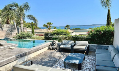 Seasonal rental of houses with a pool in Ste Maxime. Beautiful villa with a pool and sea view from the upper floor, located near La Nartelle beach, available for rent for 8 people in Sainte Maxime - This villa features a living room with kitchen opening onto a terrace and garden, 4 bedrooms including 2 upstairs, 2 bathrooms, and 3 toilets.Air conditioning in every room. It has a very pleasant freeform pool (depth from 0.80 to 2.50 m), secured by a glass barrier. Covered terraces, plancha grill, petanque court, easy access to the nearby beach. Lovely sea view from the upstairs bedroom - No pets allowed. Household linen available as an option. Price for July and August: euros4,395/week. For information, availability, and periods: please contact us by email at location@agence-provensal.fr ????????????????????????????????????????????????????????Registration number: 83115004191MX