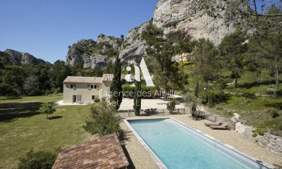LA BASTIDE DE SAINT-RÉMY is ideally located. Just two minutes from the town center via a private walkway, you'll discover the town and its shops. Its beautiful heated swimming pool, fully-equipped pool-house and bright, comfortable interiors decorated with taste and quality materials make it the ideal place for vacations with family or friends. The two-storey, 260 m2 air-conditioned property is nestled in 1800 m2 of enclosed grounds. 5 bedrooms - sleeps 10. On the first floor : Entrance hall. Guest toilets 1 living room with fireplace 1 veranda with a summer lounge. Fireplace. Opened on the garden. 1 dining room opened on the kitchen. 1 equipped kitchen with with a fan oven, an oven with several modes, a gas cooker with 8 burners a Nespresso coffee machine, two fridges, one with a freezer, an ice maker, a kettle, a toaster, a juicer 1 back kitchen and laundry. 1 room N°1 : 1 double bed in 180.a desk, dressing. In continuation a room of Italian shower, 2 basins, toilets. Access to the terrace. First floor : Room N°2 : a double bed, office, dressing room en suite an Italian shower room, two sinks, toilets. Garden and swimming pool view. Room N°3 : a double bed 180, dressing room, office en suite, Italian shower room, two sinks, toilets. View garden and swimming pool. Room N°4 : Double bed in 160. Dressing room and office. (Room 4 and 5 same bathroom) Room N°5 : Double bed in 140. Shares the bathroom, two basins, toilets. Outside : Sun baths (5) Sunshades Pool House with a corner garden furniture. 1 sports room. Outdoor terraces Outdoor dining room for 10 people Summer kitchen - equipped with a fridge, counter. Plancha Ground of bowls Shaded areas. Private parking for 4 cars Information about the pool: Dimensions/Depth: 7 m x 7 m Security : electric roller shutter Salt water system Heated pool on request. Additional charges may apply. Please note that pool heating is dependent on outside weather conditions and specific temperatures cannot be guaranteed. Amenities: Air conditioning in all 5 rooms and the entire house. High speed internet/ WiFi Washing machine Clothes dryer Iron and ironing board Hair dryer Indoor dining room for 10 people Outdoor dining room for 10 people Wood burning fireplace All linens are provided. Pool towels. Cleaning service: End of stay cleaning is included in the rental fee as well as intermediate cleaning. Intermediate cleaning twice 3 hours per week. Linen is changed weekly, unless otherwise agreed.