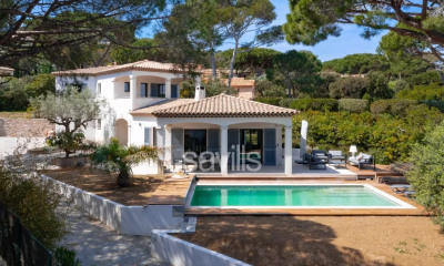 Ideally located near Saint-Tropez on the heights of the Sinopolis estate with a plot of 2800 sqm, this property of 400 sqm on two levels offers a panoramic sea view over the entire Gulf. This villa has the comfort and the necessary equipment to spend an excellent holiday with friends or family. Pool house, heated swimming pool, hammam, jacuzzi. 6 bedrooms, 7 bathrooms. Registration number: 830 65000 387 LW