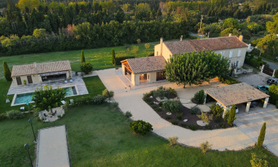 Nestled at the foot of the Alpilles and just 5 km from the renowned village of Saint-Rémy-de-Provence, this exquisite Provencal farmhouse exudes authenticity and charm. Spread over a sprawling 1.5-hectare park, the 350 sqm property marries comfort with luxury, and can accommodate up to 15 people, courtesy of its five double bedrooms and two cozy dormitories that can sleep eight children. Recently renovated with taste, the property’s focal point is a magnificent and expansive kitchen, open to both the dining room and the outdoors, setting the scene for memorable gatherings and convivial moments. This warm and inviting residence is the quintessential destination for a family vacation or a retreat with friends. The outdoor amenities mirror the comforts of the indoors, featuring a 12 x 5 m swimming pool secured by a roller shutter, and an extensive covered pool house with large lounge sofas. The garden, beautifully illuminated for those sublime summer nights, adds to the allure, while the main terrace is furnished with a generous dining table. For your convenience, the entire property is air-conditioned. Ground Floor: • A welcoming entrance hall • A cozy living room, complete with a fireplace • A dining room that opens to a spacious, well-equipped American-style kitchen • A large service kitchen and laundry room located in the basement • A snug TV room • A guest toilet • A bedroom featuring a 180 x 200 cm bed (or 2 90 cm beds), and a children's dormitory with four beds, sharing a shower room with a toilet • A suite with a 180 x 200 cm bed, its own shower room, a toilet, and a dressing room • A second dormitory with four children’s beds, shower room, and toilet First Floor: • A master bedroom with a 180 x 200 cm bed that opens onto a private terrace offering views of the park and the pool, a dressing room, and a shower room with a toilet • A bedroom with a 180 x 200 cm bed (or 2 90 cm beds), an en-suite shower room, and a toilet • A bedroom with a 180 x 200 cm bed that offers views of the park, and its own shower room with a bathtub and separate toilet Experience the charm and tranquility of Provencal life in this stunning farmhouse, where elegance meets comfort, creating the perfect setting for an unforgettable stay. Time In Provence has only one objective: the success of your next holiday in Provence. We will help you organise your stay in Provence by sharing with you confidential addresses that will enable you to create your own tailor-made programme. So that the magic happens at every moment. So that you can discover all the richness of our region. Our services don't stop at the handover of the keys. From the moment you are personally welcomed to the moment you leave, we are available to make your life easier on site. To help you slow down the pace in our region, which lends itself so well to this.