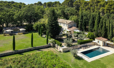 This exceptional 280m2 property, ideally located just 2 minutes from Saint-Rémy-de-Provence and 15 minutes from Avignon TGV station in the Maillane countryside, comprises a 280m2 stone house and an outbuilding. Set in a 600-foot olive grove, it enjoys a panoramic view of the Alpilles mountains. The house has 5 suites with bathroom and dressing room, 2 of which are independent. The 4-hectare landscaped garden features a 16m heated, secure swimming pool, tennis court and pétanque court. At nightfall, the garden, petanque court and olive trees light up. Fiber, indoor and outdoor speakers and a carport with car charger complete this property, which will leave you with the best memories of your stay in Provence. The mas is composed as follows: GROUND FLOOR: Entrance Guest WC with washbasin Large wall cupboards Large, fully-equipped kitchen with wine cellar, Magimix coffee machine, dishwasher, sink, toaster, kettle, central island, Siemens glass-ceramic hob with integrated hood, integrated oven, microwave and plate warmer, fridge, breakfast table Terrace and garden access Laundry room with ice maker, second fridge with freezer, washing machine, tumble dryer, ironing board and iron, vacuum cleaner Large terrace-access living room with bay window, curved TV, sofas, fireplace Dining table for 12 Bedroom 1: 1 bed 180, Alpilles view, dressing room, shower room with double basins, towel dryer, window and WC First floor: Bedroom 2: Beautiful terrace overlooking Alpilles and swimming pool 1 bed 180, dressing room, bathroom with shower, double-basins, bath, WC, large window and towel heater Bedroom 3: 1 bed 180, TV, Alpilles view, dressing room, shower room, double-basins with towel dryer, window Outbuilding : Bedroom 4: 1 bed 160, TV, dressing room, bathroom with double basins, bath, shower, WC, 2 towel warmers Bedroom 5: 1 bed 160, TV, dressing room, shower room, double-basins, towel warmer, WC, large window Private terrace Garden furniture Exterior : Boulodrome with guinguette lighting Lavender fields Tennis court Pool information: Swimming pool with fountains 16x5 heated Secured by electric roller shutter 8 deckchairs + double bed 1 fountain with fish Pool-house with summer kitchen, 12-person table, plancha, fireplace, sink Indoor and outdoor WiFi with repeaters Indoor and outdoor speakers with room selection via intuitive application. Large terrace with 2 large garden lounges, parasol, second table under planted awning Equipment : Air conditioning with thermostats in every room Electric gate with code and videophone Carport Electric car charger Alarm Speaker system throughout the house WIFI