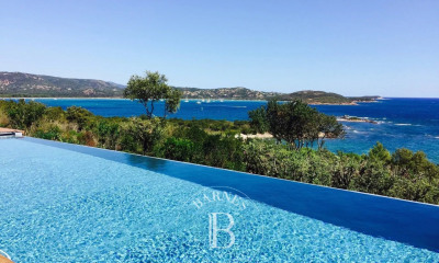 RL443 – Villa A Fiumarella Located in the private Cala Rossa estate, this two-level villa offers an exceptional setting just steps from the beach. Decorated in a chic and refined Mediterranean style, the living and dining areas open onto a shaded terrace, perfect for outdoor meals. The kitchen is fully equipped. The villa features 5 bedrooms, including a children’s room, each with its own private bathroom. Outside, a naturally designed pool, secured with an alarm system, completes the comfort. Close to shops and restaurants, the property is just a short walk from the estate’s secluded coves. Included services: regular housekeeping, bed linen, pool towels, and a personalised concierge service. Information on the risks to which this property is exposed is available on the Géorisques website: www.georisques.gouv.fr