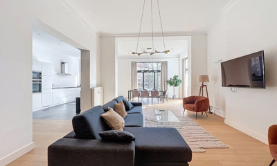 Close to Place Stéphanie and the Châtelain district – Exceptional apartment of +/- 265 m² spread over two levels, offering 5 bedrooms and an office in a warm Art Deco atmosphere. On the main level (4th floor): Entrance hall with cloakroom – Bright and spacious living room with large south-facing bay windows providing abundant natural light – Parquet flooring – open fireplace – Fully equipped dining kitchen – Office/library – Two bedrooms with walk-in closets – One bathroom and one shower room. On the upper level: Two additional bedrooms and a large office featuring an elegant decorative fireplace – Second bathroom with shower cabin. A haven of light and tranquility. Energy rating (PEB): C-. Available from 1 January 2026. Brussels Real Estate - information & visit: info@brusselsrealestate.eu / +32.2.534.24.52 Ref: '6416'