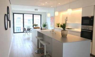 WOLUWE-SAINT-PIERRE, a stone's throw from Woluwe Park and Montgomery metro station. Bright APARTMENT (3 bedrooms/3 bathrooms) of ± 238 m² with TERRACE and parking. Located on the 1st floor, it comprises an entrance hall with cloakroom and guest toilet, bright living room of ± 45 m² with parquet flooring giving access to the terrace, dining room and adjacent TV lounge, fully equipped kitchen with small terrace, 3 bedrooms of ± 20, 19 and 10 m², two with cupboards, 3 adjacent bathrooms. Shared garage in the basement. Common charges and heating: euros450/month. EPC: D. Come and see it at L&P! Ref: '7613931'