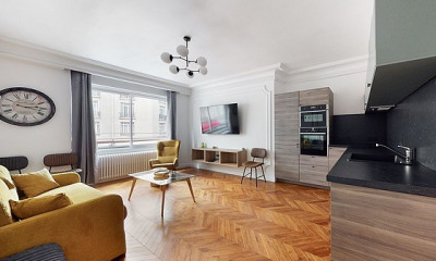 ERA LUXURY offers for rent an exceptional apartment located on the third floor with elevator access of a cut-stone building. This prestigious property offers 87 sqm (Carrez Law) and has benefited from a complete high-end renovation. Fully refurbished and offered as a furnished rental, it features luxurious amenities and optimal comfort. This dual-aspect apartment, facing East/West and South, enjoys generous ceiling height, enhancing the sense of space and natural light. The bright reception area comprises a living room, a dining room, and a contemporary open-plan kitchen fully equipped. The sleeping area includes two bedrooms, each with its own private bathroom. A guest WC and a separate laundry room complete this perfectly laid-out property. Individual electric heating, air conditioning, refined finishes, and high-quality materials. A cellar completes the property. Highly sought-after address on rue Gustave Courbet, in the heart of the 16th arrondissement, in immediate proximity to the shops of avenue Victor Hugo, the Trocadéro, public transport, and the renowned Janson-de-Sailly secondary school. A rare rental opportunity, ideal for a discerning clientele seeking elegance and comfort in one of the capital's most prestigious neighborhoods.