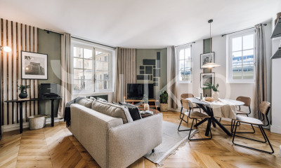 In a quiet environment, this furnished apartment91 m² (about 978 ft²), built in 1950, in a building of 7 floors has 3 rooms including 2 bedrooms, 2 bathrooms and 2 toilets. It has a living room, dining room, a Separate kitchen and a cellar. Totally renovated, it's located on the 3rd floor with a lift. Heating : Radiator. Others : intercom, digicode, guard, parquet floor.