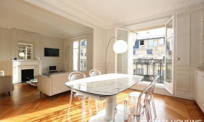 In a quiet environment, with an open view this furnished apartment93 m² (about 1000 ft²) contains 4 rooms including 2 bedrooms, 1 bathroom and 1 toilet. It is equipped with a living room, with a Fitted separate kitchen and with a balcony. It's located on the 6th floor with a lift. Heating : Individual gaz. Others : intercom, digicode, guard, parquet floor, fireplace.