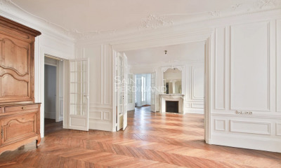 Rue Cardinet, a stone’s throw from leafy Parc Monceau, Malesherbes metro station and the shops. This bright and peaceful apartment offers 136 sqm of entirely renovated living space. Featuring Herringbone parquet flooring and fireplaces, it includes a living/reception room enjoying an open view and opening into a dining room, an equipped kitchen, three bedrooms one with a dressing room and bath, and a shower room. Available beginning of June. For a rental under the conditions of the Code Civil, fees of 12% of the tax-inclusive charges exclusive annual rental shall be applicable.