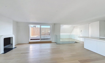 In a 4-apartment villa-style residence with concierge service, a ± 557 m² (according to PEB) garden-level triplex with a 12 ares south-west-facing private garden designed by architect Claire Bataille. Combining clean lines and large bay windows, it comprises an entrance hall leading to the reception rooms, comprising a lounge with open fireplace, a dining room opening onto the ideally-facing terrace and garden, a fully-equipped kitchen with adjoining pantry, a television room, a study with library and a bar. The first floor comprises a master suite with a bedroom, 2 dressing rooms and a marble bathroom with an adjoining fitness area, and a second bedroom with a shower room. On the garden level, a flat comprising a bedroom, a living room with kitchenette, dressing room and bathroom, access to an amphitheatre-like terrace and a double bedroom with kitchenette and shower room, ideal for an au pair. Other information: Lock-up garage (3 cars), 3 armoured doors, integrated B&O system, internal and external alarm, three cellars, laundry room and room for individual boiler. Le Prince d'Orange is ideally located between Uccle and Rhode-Saint-Genèse. It's a pleasant neighbourhood that offers a green and peaceful environment while being close to all amenities. Schools are nearby. For further information, please contact Bertrand de Moffarts on + 32 (0) 475 944.508. Ref: '7353303'