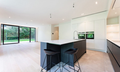 In the listed area of La Hêtraie, a magnificent wooded park, this superb duplex (ground floor + first floor), designed in 2002 by architect Marc Corbiau, offers ± 230 m² of living space and benefits from terraces totalling ± 100 m². The apartment comprises a beautiful reception room with mezzanine, a fully equipped kitchen, a study, three bedrooms including a large master suite with dressing room, two bathrooms and a laundry room. Beautiful features and finishes reinforce the unique character of this property. A double garage is available at an additional cost of euros50,000. EPC: D- A rare and elegant Corbiau property, nestled in a listed, green environment. Ref: '7632236'