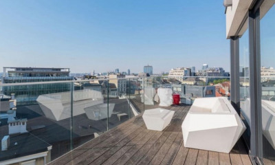 This sumptuous apartment, located on the 9th floor with no direct neighbors opposite, combines elegant finishes, optimal light, and harmonious spaces to create an exceptional whole. Located in an exclusive building, where each floor has only one apartment, it enjoys privileged privacy and a condominium on a human scale.Upon entering, a hall with a cloakroom leads to a spacious living-dining room at the front of the building, with a large terrace offering impressive views of the city. The semi-open, fully equipped kitchen invites conviviality with an integrated dining area. The laundry room and service elevator optimize practicality.The sleeping area consists of a master suite with a magnificent terrace, dressing room, and full bathroom. Two other bedrooms share an additional shower room, ensuring comfort and privacy for all occupants.Cellar included. Various parking options available: garage box at euros75,000, carport space at euros50,000, and outdoor space at euros40,000.A rare, comfortable, and peaceful offering—perfect for a life of luxury and tranquility. To visit with Sascha - sb@bathim.be Ref: '7642098'