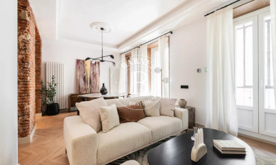 Barnes Madrid presents a 223 m2 penthouse furnished with a fabulous terrace. Located in the center of Madrid on one of the main streets of Gran Via, this flat has a vestibule, two bedrooms, two bathrooms, an open plan kitchen, dining room, living room, and a large terrace with BBQ, chill-out area, sauna, and a large jacuzzi. As soon as we enter we find a nice hallway and going along the corridor we have the first bathroom with a shower. Next is the master bedroom which is separated by sliding doors from a large dressing room and bathroom on one side with a bathtub and shower, on the other side the toilet, each part separated with frosted glass doors. Moving along the hallway we find the second bedroom or office with access from the hallway and the kitchen through sliding doors. At the end of the hallway, we have a spacious living room with large windows and access to the terrace. To the left, we have the open kitchen with a fully equipped island, and to the right a beautiful dining room. The penthouse is FULLY FURNISHED with all the necessary inventory to move in immediately. It has all the electrical appliances such as TV, hoover, bed linen, crockery, etc. This is your opportunity to enjoy Madrid in a luxury house next to Gran Via!
