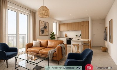 This new apartment63 m² (about 677 ft²) has 3 rooms and 1 bathroom. It has a None and a terrace. It's located on the 1st floor with a lift. Others : digicode.