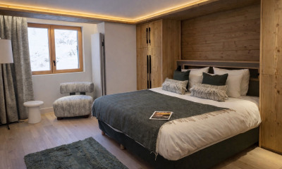 Five-room apartment ideally located at the gateway to the old village and a stone's throw from the slopes, in a new, intimate residence. Comprising four en suite bedrooms, one of which is a duplex, this 119 sqm property enjoys a southern exposure and a magnificent view of the slopes. A beautiful living room with central fireplace and exposed beams opens onto a bright, quiet balcony. The apartment is sold furnished, with a cellar, garage and covered parking. LAYOUT - Entrance hall - Kitchen opening onto living room with fireplace - En-suite bedroom with bathroom and WC - En-suite bedroom with shower room and WC - Bedroom en suite with shower room - Duplex and en suite bedroom with shower room ANNEXES - Balcony - Ski locker - Cellar - Garage - Covered parking