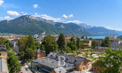 ANNECY SOTHEBY'S INTERNATIONAL REALTY is delighted to present this exclusive property located close to the town centre. This vast, 125 m², walk-through flat enjoys a pleasant living environment thanks to its good exposure, guaranteeing plenty of natural light throughout the day. It has never been lived in since undergoing an exceptional renovation with top-of-the-range features, and will win you over with its quality materials and elegant herringbone parquet flooring. This property features a fully equipped kitchen and dining room with access to a south-facing balcony, semi-open onto a lounge that itself opens onto a west-facing balcony. A hallway leads to a practical utility room for the washing machine and tumble dryer, as well as to the sleeping area, comprising : A first bedroom or study with access to the south-facing balcony, three bedrooms with parquet flooring, including one with access to the west-facing balcony, each equipped with built-in wardrobes/dressing rooms, Two modern, functional shower rooms and two toilets for optimum comfort. The exteriors include two balconies totalling 21 m², offering double south and west exposure. Outbuildings: Two cellars, one of which is 6 m², One parking space included, Two enclosed garages available at extra cost ( euros40,000 each). ANNECY SOTHEBY'S INTERNATIONAL REALTY, your expert in the sale and rental of luxury properties in the Annécien and Aravis areas.
