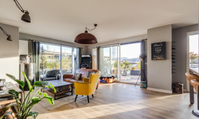 In a quiet environment, with an open view and south exposure this apartment98 m² (about 1054 ft²) duplex, in a building of 3 floors contains 4 rooms including 3 bedrooms, 1 bathroom and 2 toilets. It is equipped with a living room 36 m² (about 387 ft²), with dining room, with a Kitchen/dining room, with a terrace, with a garage and with a parking lot. It's located on the 2nd floor with a lift. Heating : Mixed. Others : intercom, digicode, parquet floor, cable television.