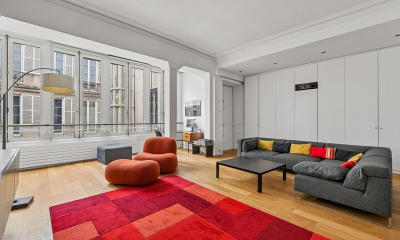 Saint Germain des Prés, near the iconic Café de Flore. This air-conditioned and fully south-facing apartment in perfect condition is on the top two floors of a fine late 19th century freestone building. Sunny and oozing with charm, it includes a living/reception room opening onto balconies, a kitchen/dining room, a bedroom with a shower room, two further bedrooms, a bathroom and three wc.