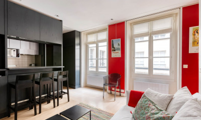 In a quiet environment, with an open view and west exposure this apartment49 m² (about 527 ft²) comprises 2 rooms including 1 bedroom and 1 toilet. It is provided with a living room 30 m² (about 322 ft²), with a Kitchen/dining room, with a terrace and with a cellar. It's located on the 5th floor. Others : parquet floor.