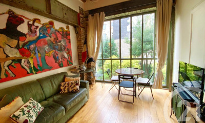 Cherche Midi neighbourhood. This 73 sqm apartment occupies the whole 1st floor of a fine mid 19th century building located in a peaceful street just 30 metres from the capital’s iconic Bon Marché department store. Offering 73 sqm of recently renovated living space, it includes a spacious living/reception room and dining room featuring exposed beams, and a peaceful bedroom overlooking a courtyard. A parking space may be acquired at extra cost
