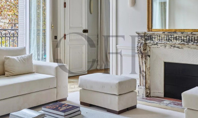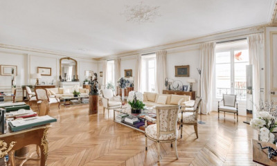 Just a few steps from Avenue Montaigne, within a former private mansion, this 200 sqm apartment occupies the noble floor and enjoys a ceiling height of 3.80 meters. Entirely redesigned and renovated in 2025 by an architect, it combines the charm of period features with a contemporary sense of refinement. The entrance opens onto the living room, dining area, and open kitchen, arranged as one cohesive living space. The night area includes two suites with dressing rooms. A TV lounge, a daytime shower room, and a guest toilet complete the layout. A cellar and a parking space are also included with this exceptional property. Balancing Haussmannian elegance with modern comfort, this apartment captures the spirit of Parisian exclusivity in a rare and sought-after address. Contact : Sandrine +33 6 34 30 72 34