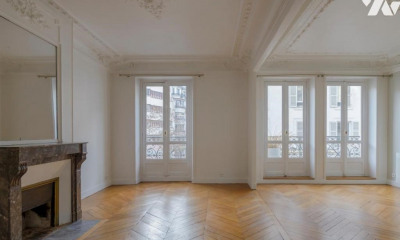 PARIS 9th - In the heart of one of the most charming private streets of the 9th arrondissement, between rue de Trévise and Faubourg Montmartre, on the noble floor with elevator of a magnificent 19th century building, a beautiful 158.18 sq.m apartment (142.3 sq.m loi Carrez) with generous volumes (over 4 m. ceiling height), in absolute calm. The highly adaptable layout includes: an entrance gallery leading to a vast 66.24 sq.m living room with an open, fitted and equipped kitchen and a laundry room, a suite with dressing room, two bedrooms each with a beautiful 'night' space on a mezzanine, a large bathroom with bathtub, shower and toilet (2nd bathroom possible) and guest toilets. This property, full of charm and character, with rare volumes, is ideally located. A parking space (at the foot of the building) and a cellar complete this beautiful ensemble.