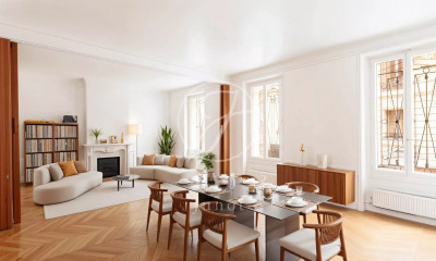 In the heart of the Iena district, on the 5th and top floor by elevator of an early 20th century building of the highest standing, this elegant 333 m² Carrez reception apartment boasts an exceptional view of the Eiffel Tower and numerous Parisian monuments. Alone on the landing, it comprises an entrance hall, a luminous double reception room bordered by large, open-air balconies, a large dining room, a separate kitchen, a master suite with dressing room and bathroom, and two additional bedrooms sharing another bathroom. Plenty of storage space. Very high ceilings and air conditioning. Two service studios, a closed box in the building's courtyard, and two cellars complete this offer.