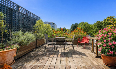 Garden level of 124m2 duplex opening onto terrace 70M2 and a garden of 103m2+200M2. This property Located in a semi-recent luxury building, entirely overlooking the garden, benefits from absolute calm, it is composed of a double reception room, an open-plan kitchen opening onto a garden terrace, a master suite with dressing room and bathroom. overlooking the garden, upstairs a bathroom, two bedrooms, a bathroom and a toilet. Two cellars and a