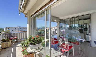 Exclusive Listing – Offered by Our Agency. Located in the highly sought-after Basse Californie district of Cannes, just a short walk from shops, Palm Beach beaches and surrounded by greenery, this beautiful apartment enjoys an ideal setting within a modern, secure residence with caretaker and video surveillance. Situated on the 5th floor, this 63,13m² apartment features an entrance hall leading to a bright living room opening onto the terrace, a fully fitted and equipped closed kitchen, two bedrooms, a shower room, a guest toilet, and plenty of built-in storage. All rooms open onto the terrace and enjoy sea views. The spacious 30m² south-east facing terrace offers a stunning panorama over the hills of Californie, the Mediterranean Sea, and the Lérins Islands – perfect for enjoying the sunny days of the French Riviera. Additional features: - Private underground parking space. - Large cellar. - Shared residents’ parking. A rare opportunity on the market, combining comfort, elegance, and breathtaking views – ideal as a primary residence, a holiday home, or a prestigious investment in Cannes. Contact us today to arrange a viewing of this exceptional property.