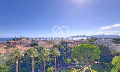 QUARTIER STANISLAS NEIGHBORHOOD. THREE-ROOM APARTMENT WITH BALCONIES AND PANORAMIC SEA VIEW. TOP FLOOR On the top floor, with a lift, of a luxurious and magnificent 19th-century historic hotel, benefiting from a 1.5-hectare landscaped park, with a caretaker, ideally set 500 meters from restaurants and beaches: Sun-bathed 91 sqm apartment full of character, it features high ceilings. With its three balconies, it offers a panoramic view of the sea, the Lérins Islands, and the Esterel hills. The apartment comprises an entrance, a living room, a fully equipped separate kitchen, two bedrooms each with a balcony, a shower room, and separate toilets. This property stands out for its prime location within a character-filled residence, offering a truly unique view. A rare opportunity in the area. An underground parking space can be offered at an additional cost.