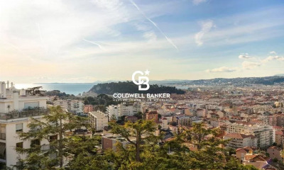 NICE MONT BORON : Located in a quiet cul-de-sac between the Port of Nice and the Mont Boron, with walking access to the sea, on the top floor of a magnificent Neoclassical building built in 1992, this superb 5-room duplex apartment of 143sqm features a dual aspect and is mainly southwest-facing. It comes with a cellar and two closed garages. It comprises an entrance hall, a living room opening onto a terrace with panoramic views of the city and the sea, an office, a separate fitted kitchen, an en-suite bedroom with a dressing room and bathroom, and a guest toilet. Upstairs, there are two large bedrooms, each with its own bathroom and terrace, with plenty of storage space. Boasting plenty of natural light, this apartment in need of refurbishment is perfect for a family, whether as a primary or secondary residence. A must-see! Agency fee included, payable by the seller.