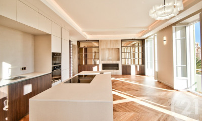NICE CENTER / CARRE D'OR : On the second to last floor, a superb 93,8sqm apartment, facing South/North, ideally situated in the heart of the pedestrian zone, at 2 minutes from the Place Massena and 5 minutes from the beach. Very bright and fully air-conditioned, it is comprised of a lovely entry way, large living room with fireplace and fitted kitchen, 3 beautiful bedrooms one with a balcony, shower-room with WC, separate toilets. To see quickly. Agency fees of 5% at the charge of the seller.