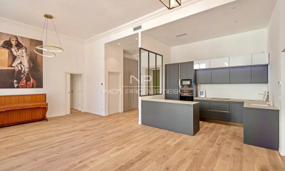 Located in the Carré d'Or district of Nice, this 109 sqm apartment is situated on the first floor of a traditional Niçois building from the 1940s. The property includes a spacious living area with lounge, dining room and open fully equipped kitchen with central island. The night area features two bedrooms, two bathrooms and an independent study that could be converted into a third bedroom. The apartment benefits from high ceilings, wooden floors and large windows, providing natural light and character. It is ideally located close to the Promenade des Anglais, beaches, shops and restaurants. Côte d'Azur Sotheby's International Realty For further information or to arrange a viewing, please contact Côte d'Azur Sotheby's International Realty, your specialist in luxury real estate on the French Riviera.