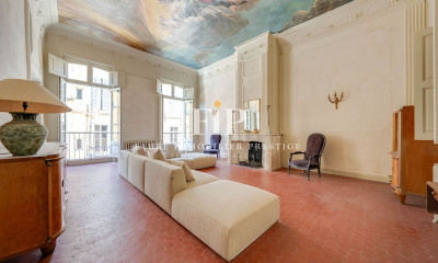 Exclusivity Sotheby's, in the prestigious Mazarin district, the heart of Aix-en-Provence's historic center, discover this exceptional 298 sq m apartment nestled in a verdant setting of absolute tranquility. Located on the ground and garden levels of a historic private mansion, this elegant property captivates from the moment you enter with its generous proportions, period moldings, fireplaces, and listed paintings. The ground floor features two refined living rooms with fireplaces, as well as three bedrooms, each with its own bathroom. Direct access to the lush garden creates a seamless flow between indoors and outdoors. The garden level offers a spacious dining room, a fully equipped kitchen, a relaxation area or playroom, two additional bedrooms with bathrooms, and a cellar. The landscaped garden is a true haven of peace, complete with a swimming pool reminiscent of an antique basin, ideal for relaxing in complete privacy. A 140 sq m outbuilding completes this unique property, comprising a garage, a laundry room, and a space easily convertible into a self-contained studio. A rare find, combining prestige, comfort, and tranquility, in the heart of one of Aix-en-Provence's most sought-after neighborhoods. Mandat N° 1464 - Sotheby's AIx en Provence Realty, la référence des biens de prestige à Aix en Provence -