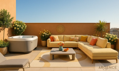 With south exposure this apartment111 m² (about 1193 ft²), built in 2011, in a building of 5 floors has 5 rooms including 4 bedrooms, 1 bathroom and 2 toilets. It has a living room 46 m² (about 494 ft²), a Fitted separate kitchen, a terrace and a garage. It's located on the 5th floor. Heating : Reversible airconditioning.