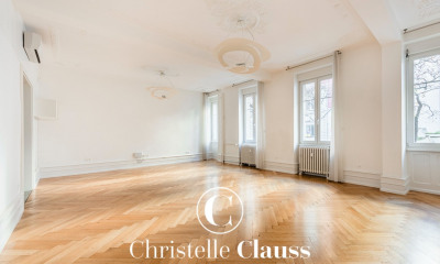 IMMOBILIERE MERGER offers you a rare property for sale, ideally located in the highly sought-after Contades district, just a stone's throw from the tramway and main motorway routes. On the 4th floor of a 7-storey building with elevator, built in 1969 and mostly owner-occupied, this 191.5 sq.m. walk-through apartment will seduce you with its spaciousness and potential. Features: - Spacious entrance hall - 73m² double living/dining room opening onto a large balcony with exceptional park views - separate kitchen with access to a loggia - hallway with numerous built-in storage spaces - guest WC - 3 large bedrooms - bathroom with WC and shower room This property is in need of some refurbishment to enable you to personalize it to your taste. In the annexes - two bright, heated service rooms of approx. 9m² with WC and shower on the landing - a large closed garage - a large cellar Secure condominium with janitor Collective gas heating with calorimeters To discover without delay!